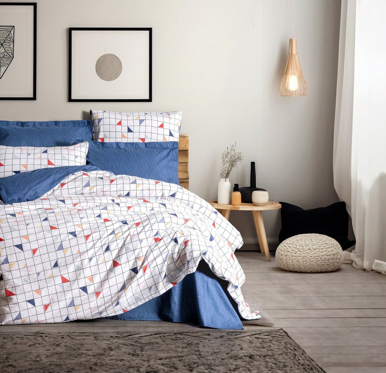 Lenjerie de pat pentru o persoana (FR), 2 piese, Lessentiel Maison, Geometrik, Albastru