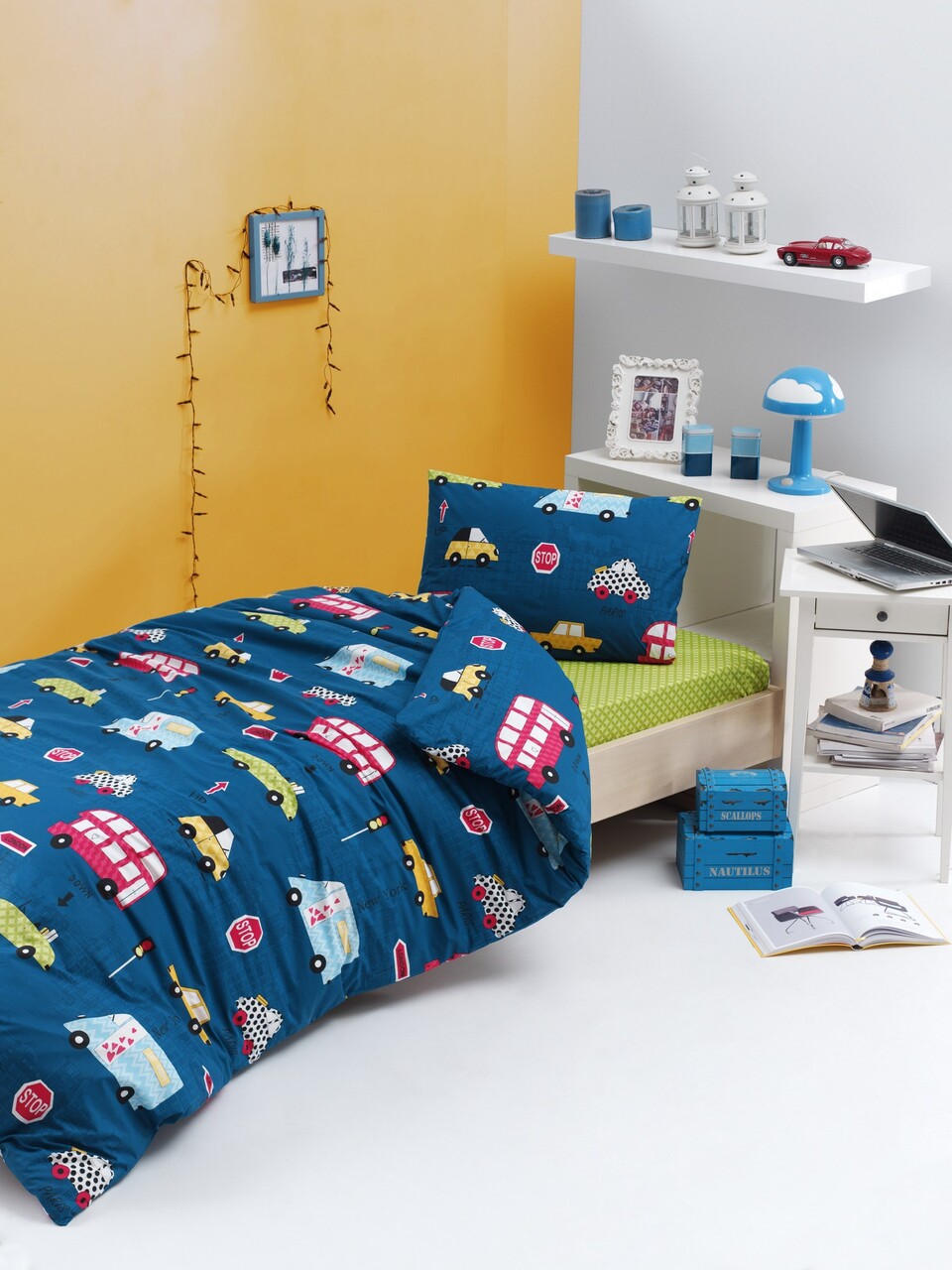 Lenjerie de pat pentru o persoana (FR), Lessentiel Maison, Nifty, Albastru inchis