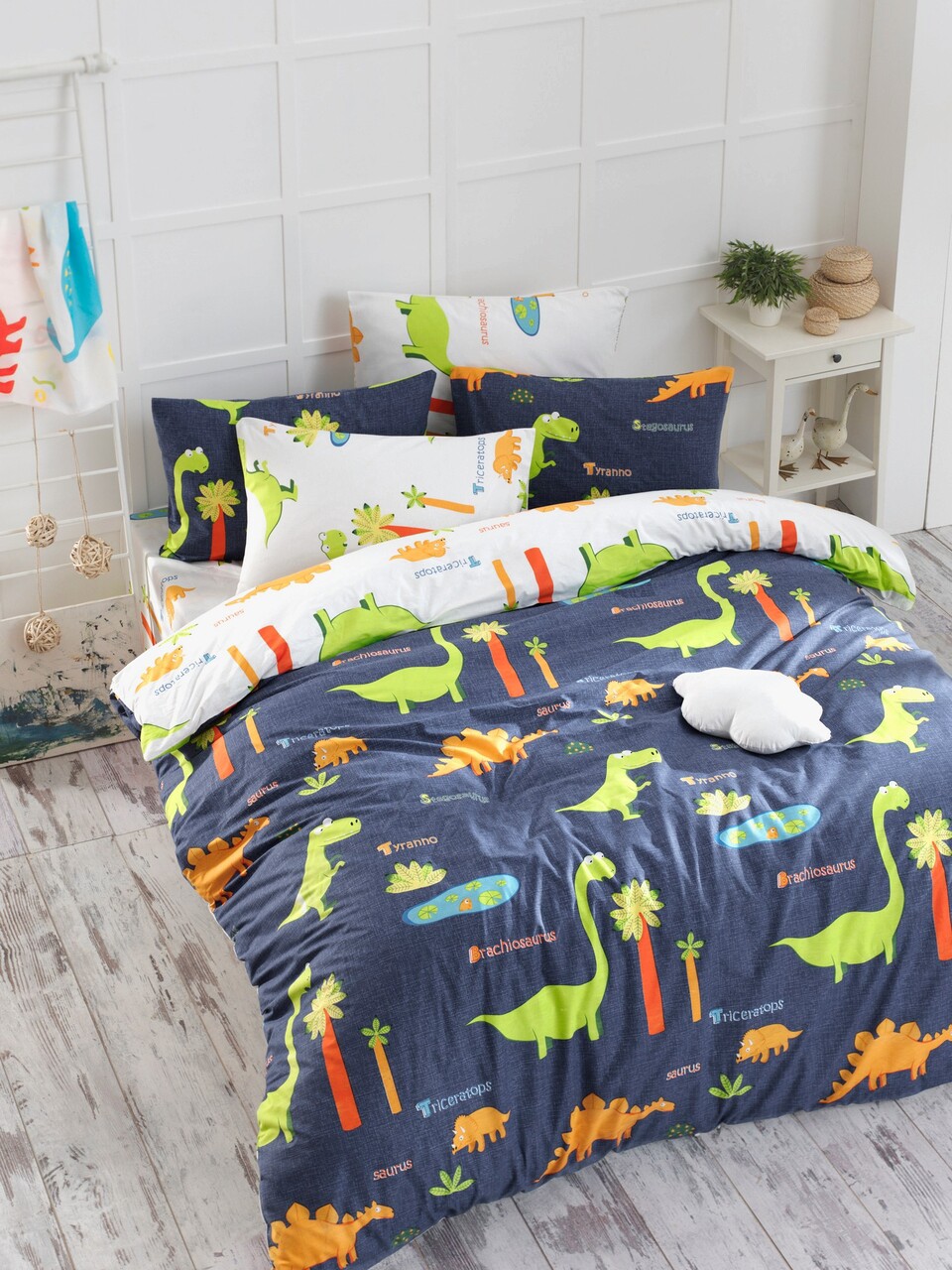 Lenjerie de pat pentru o persoana Single XXL (DE), 2 piese, Lessentiel Maison, Dinolar, Albastru inchis