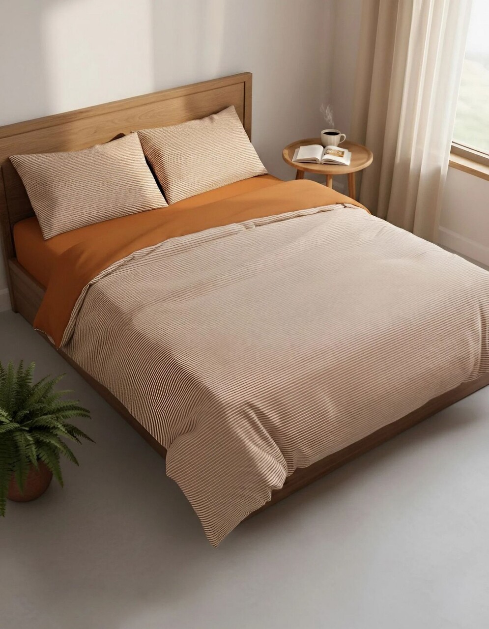 Lenjerie de pat dubla King (FR), Lessentiel Maison, Stark Kombin, Scorțișoară / Albastru închis