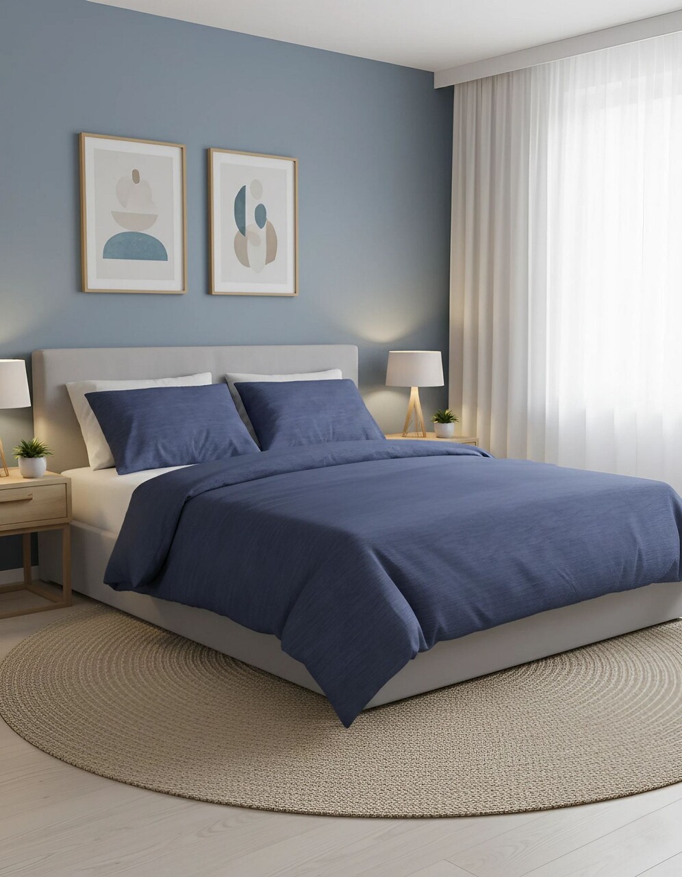 Lenjerie de pat dubla Super King (FR), 3 piese, Lessentiel Maison, Line, Albastru