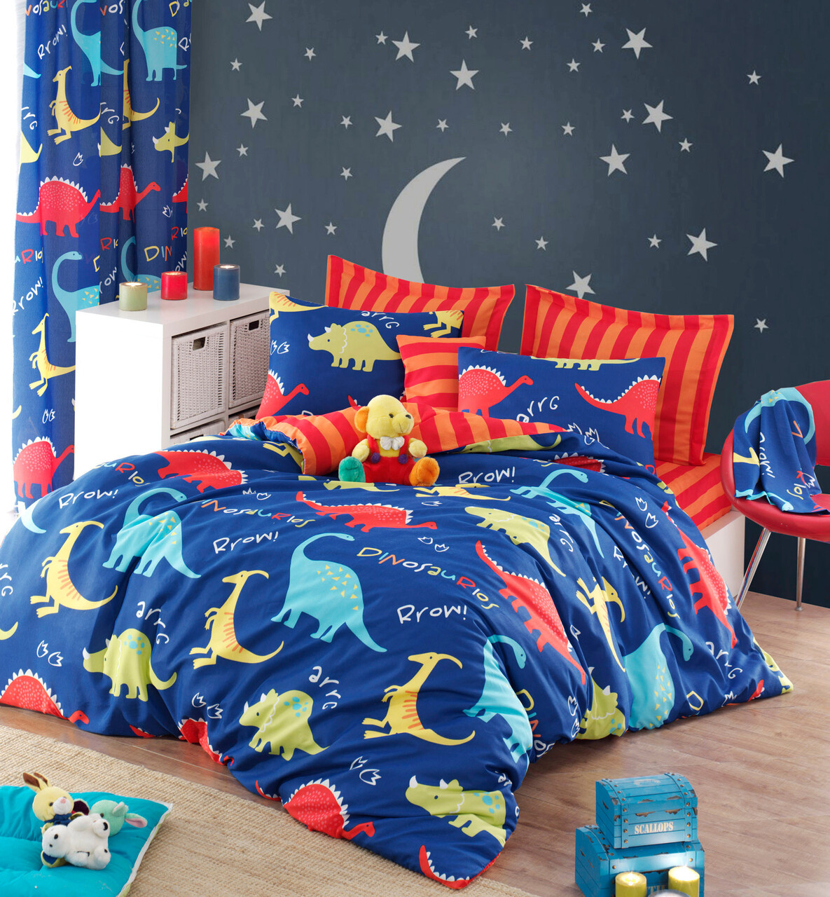 Lenjerie de pat pentru o persoana Single XXL (DE), 2 piese, Lessentiel Maison, Dinazorus, 65% bumbac/35% poliester, Albastru / Roșu / Galben
