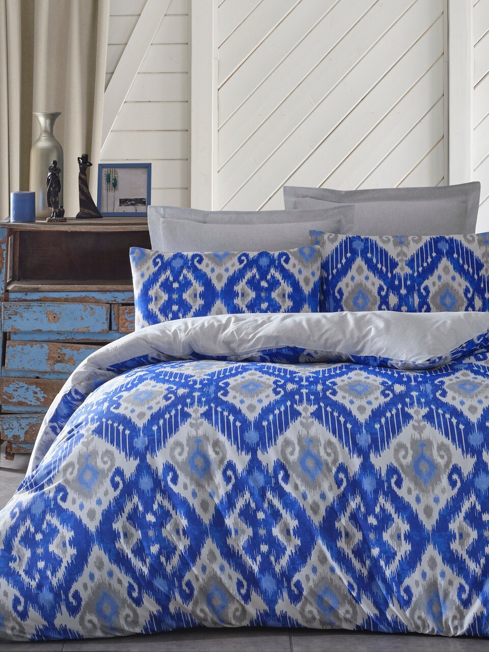 Lenjerie de pat dubla (DE), 3 piese, Lessentiel Maison, Üçgen, 65% bumbac/35% poliester, Albastru/Alb