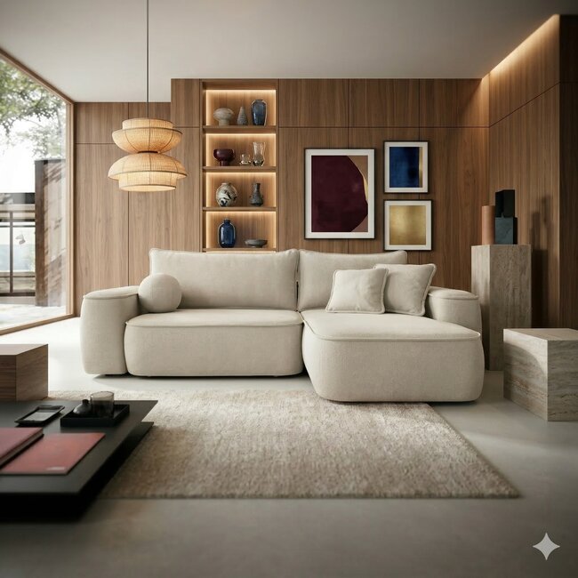 Colțar Sandby, 283x168 cm, cu ladă de depozitare, spațiu de dormit generos, material premium