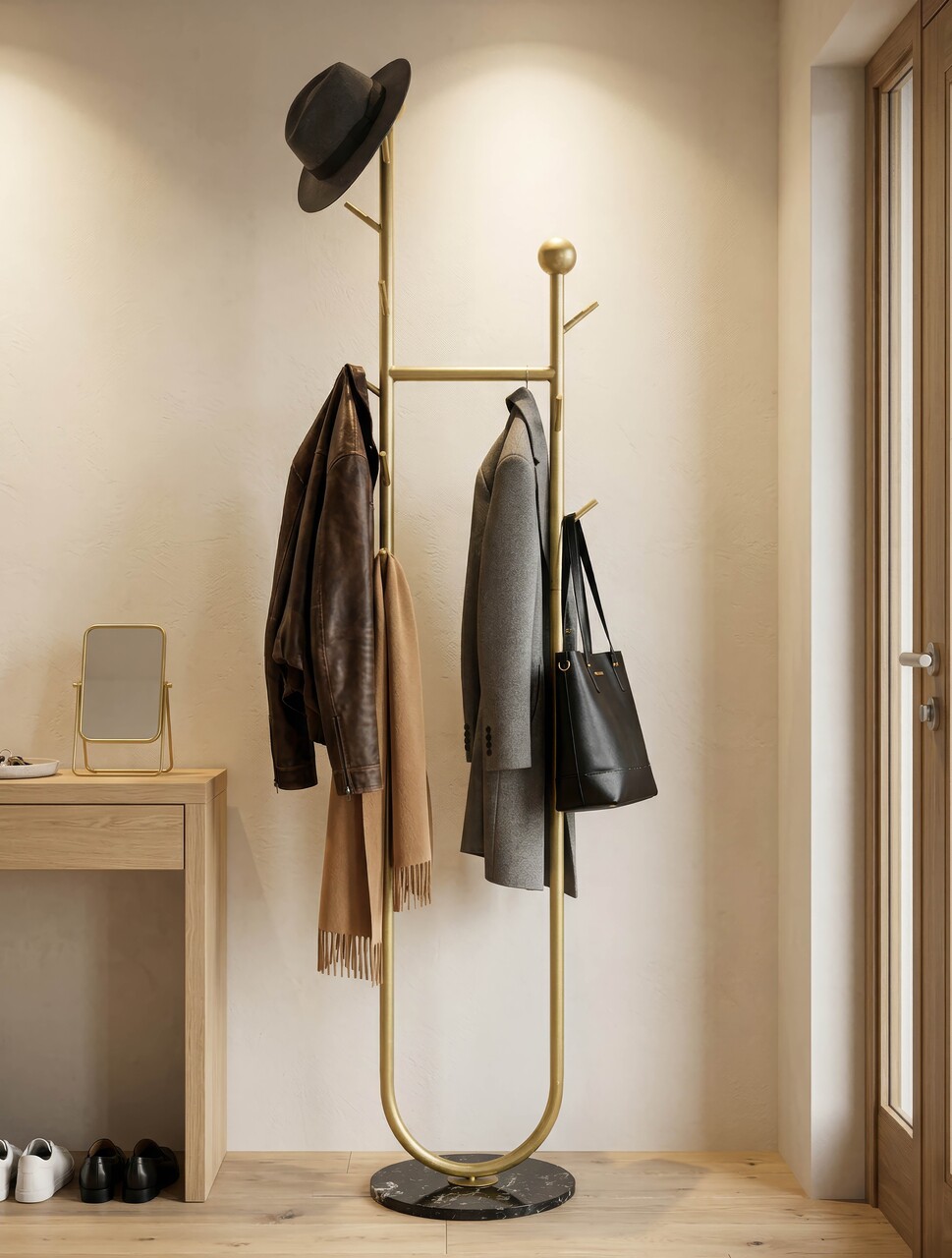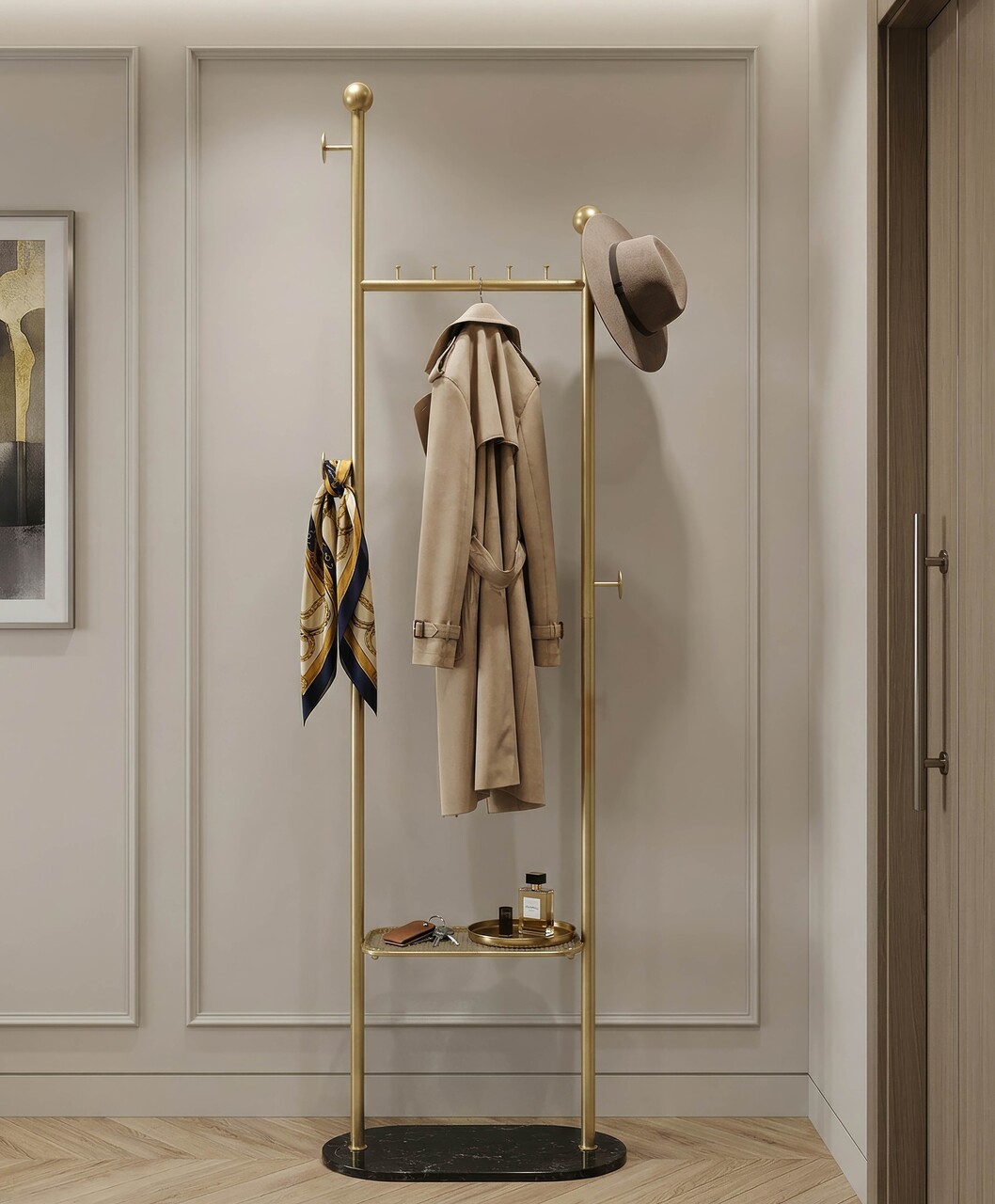 Cuier, Mauro Ferretti, Olaf, 48x30x178 cm, metal/imitatie de marmura, auriu/negru