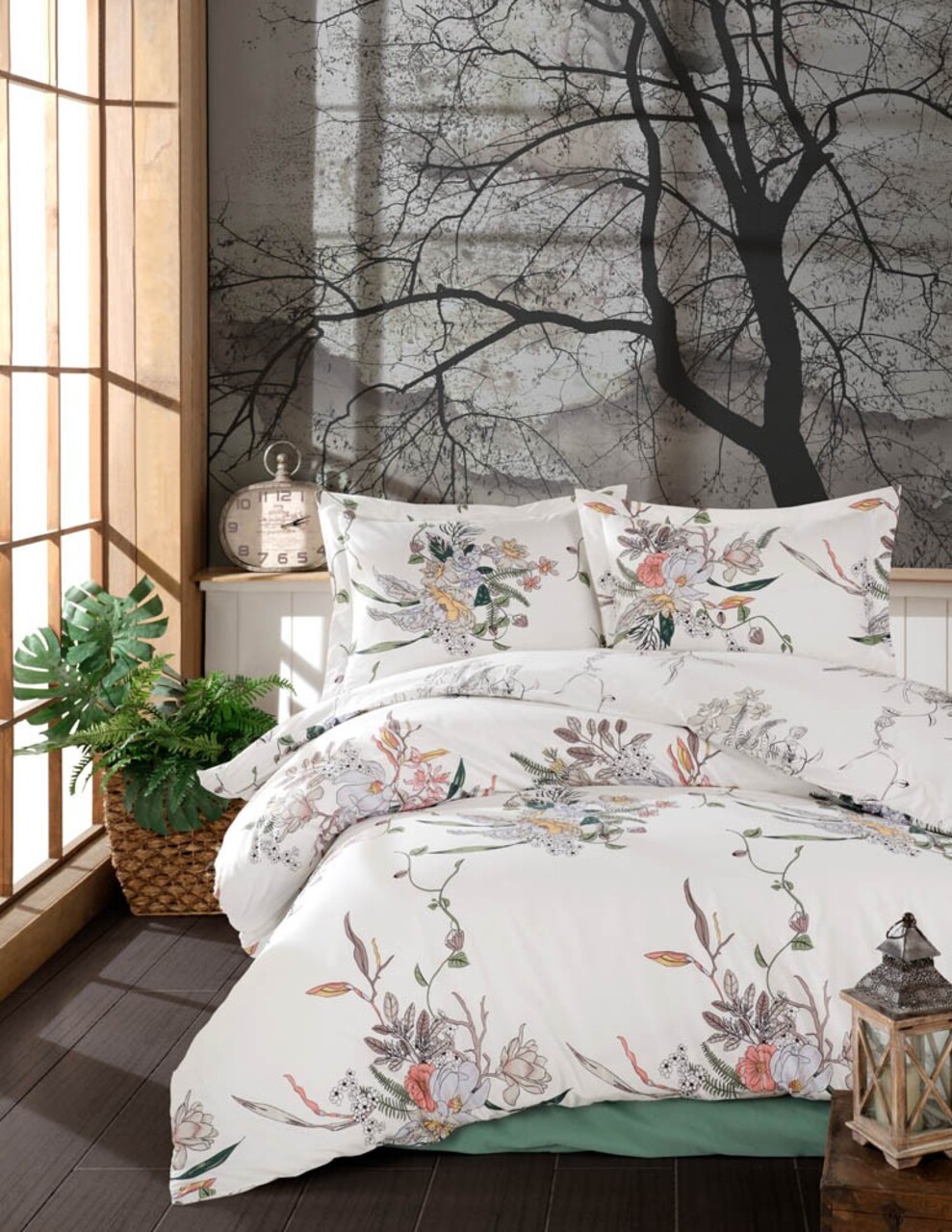 Lenjerie de pat dubla King (DE), 3 piese, Lessentiel Maison, Crips, Alb / Verde / Albastru / Roz